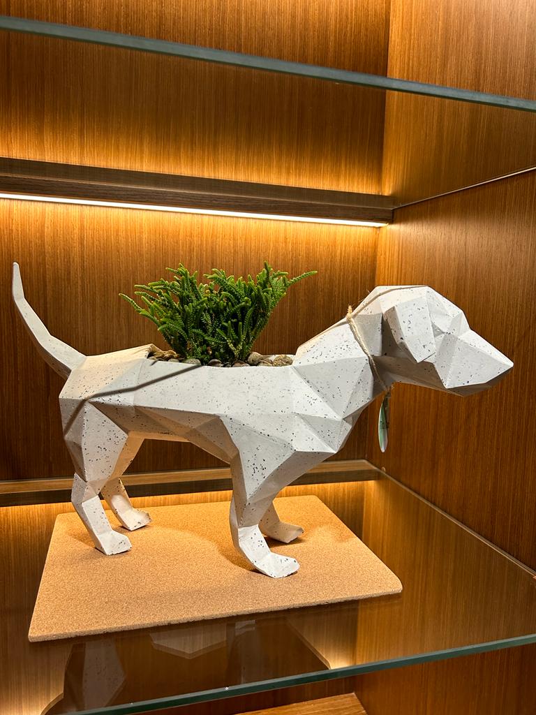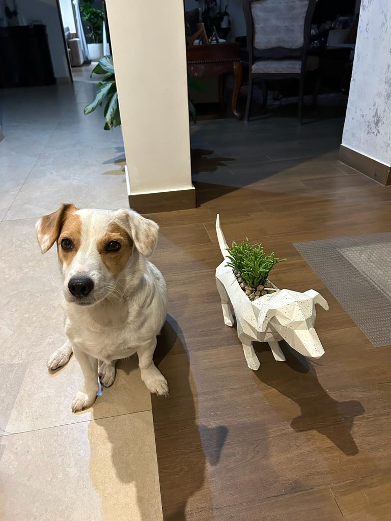 Maceta de cemento finamente pulido en forma de Jack Rusell